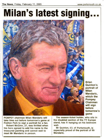 Rob has just rang me from Fratton Park to say that Milan loved the painting